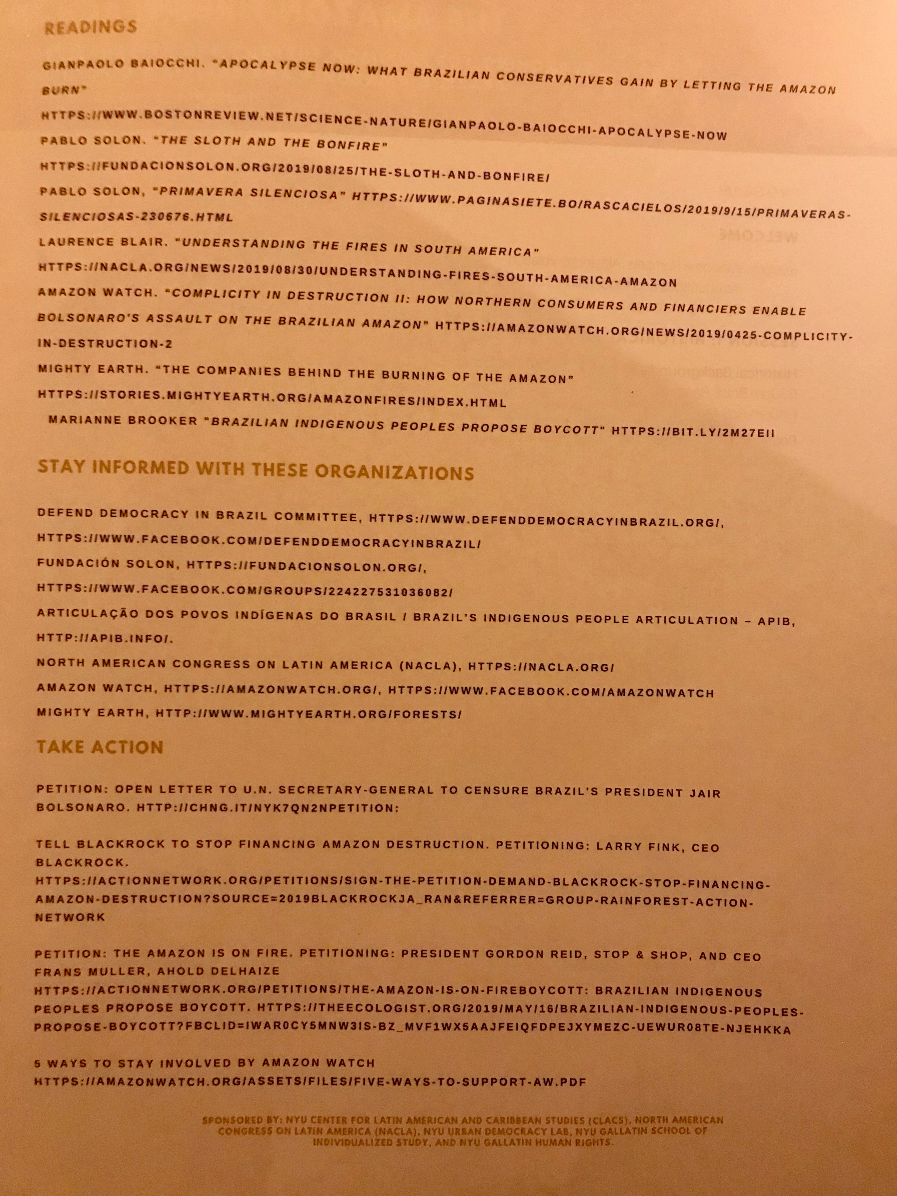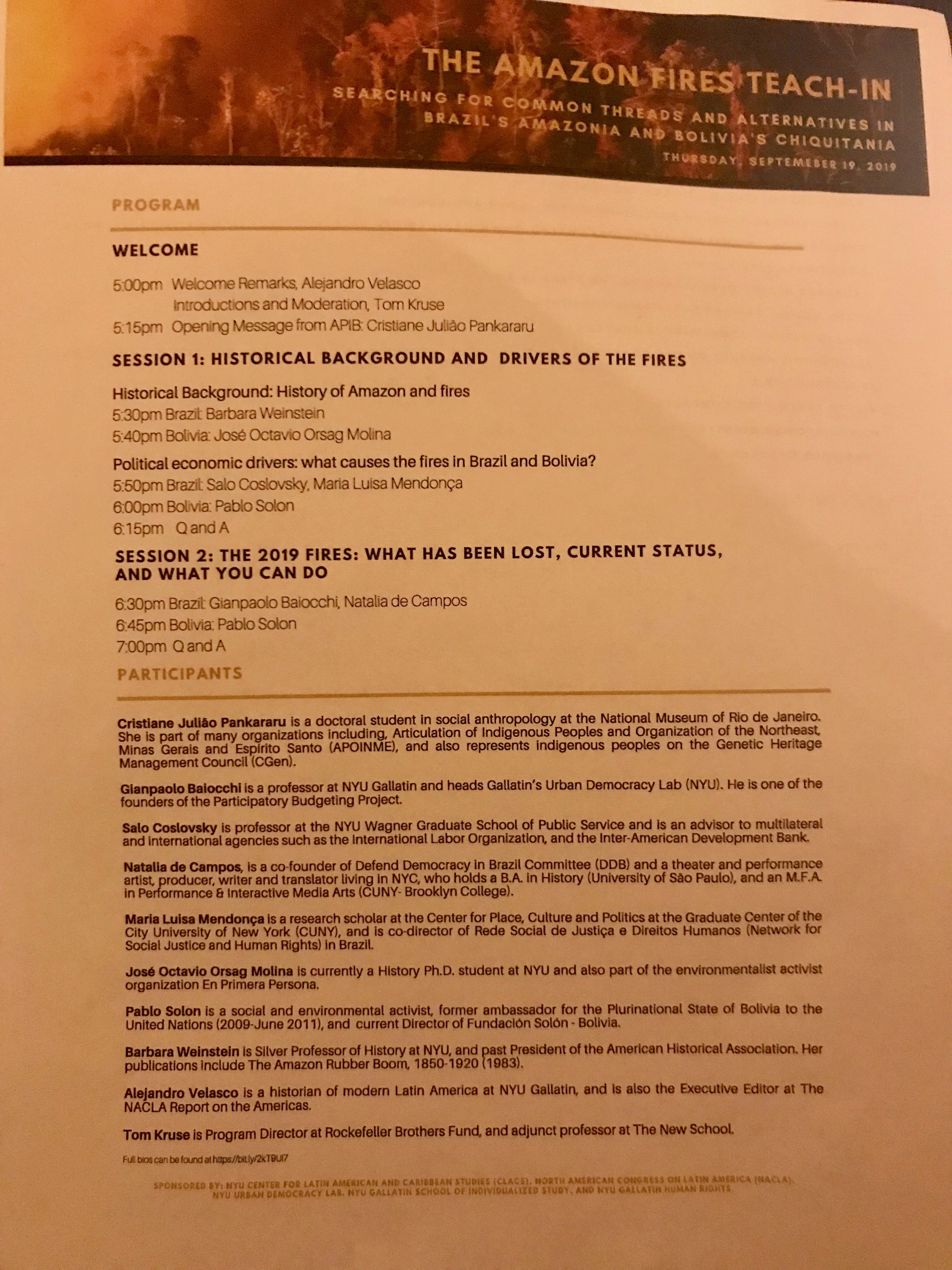 Here are my notes from a panel on the fires in Brazil and Bolivia (full video at the NYU website below):